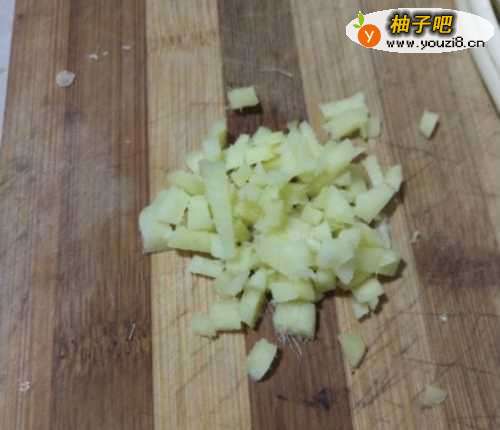3如图,把生姜、辣椒洗净后切好备用。