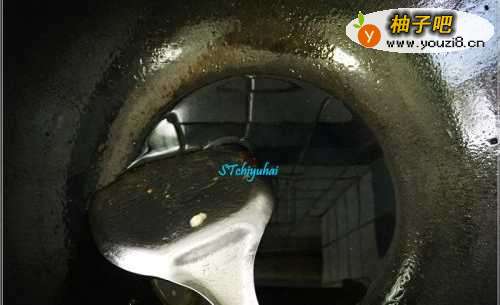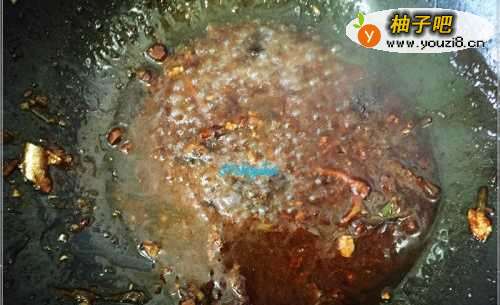 6这道菜的主要拌料--豆瓣酱,先取出少部分少量加入到锅中。大火煮沸了一会后转成中火,中火慢慢熬去汤汁,待水快干时转大火,基本上酱汁粘锅就差不多了,将鱼捞出。