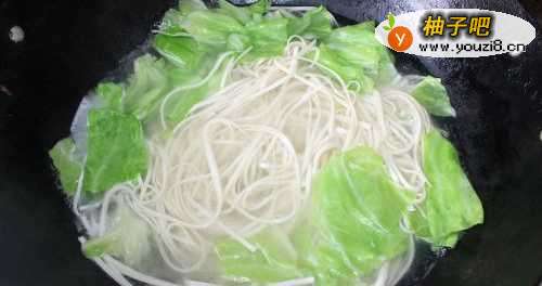8水开后放入面条煮熟。