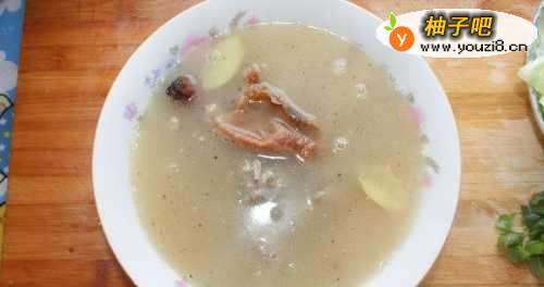 6炖好的鸭汤盛入装有调料的碗中备用。