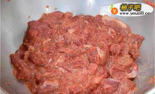 牛里脊肉切片,先用啤酒浸泡20分钟,再过滤掉啤酒,加些腌料再腌制备用。