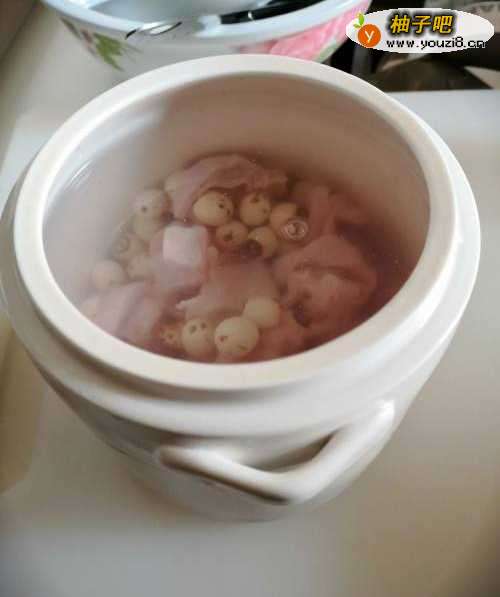 44.加入饮用水,一定要没过莲子和猪肚。