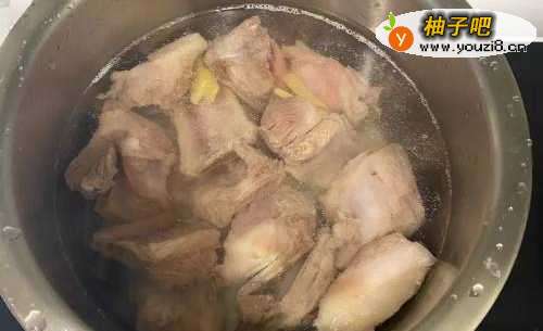3取一锅清水,重新放入排骨,姜片与米酒一起煮