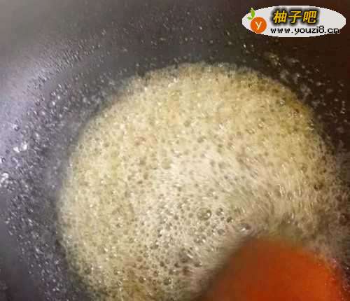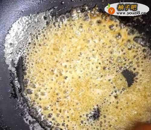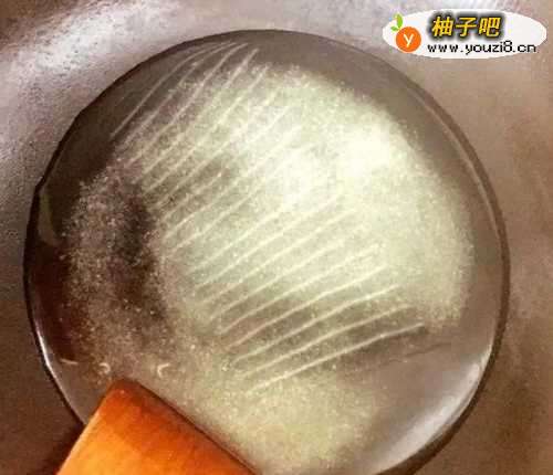 8水份蒸发,糖液慢慢变的浓稠,出现很多白色的泡泡。
