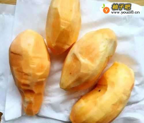 先将红薯去皮,洗干净,然后等到表面的水吸干