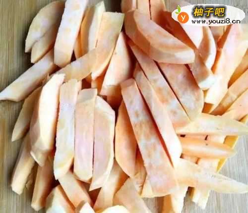 2将红薯切成条状或者块状。