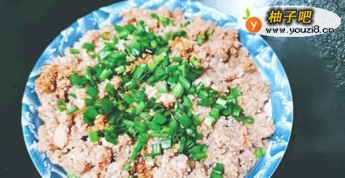 4烧半锅开水,把搅拌好的猪肉放入锅隔水蒸50分钟左右。