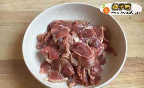 2鸡胗洗干净,切成薄片;