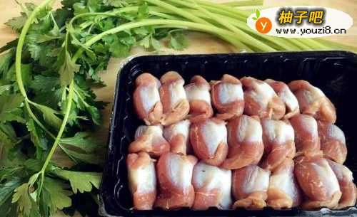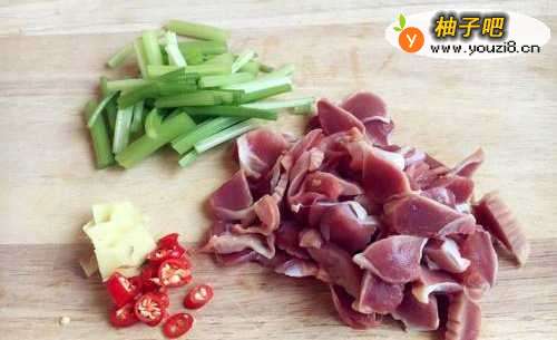 主要食材鸡胗和水芹菜。
