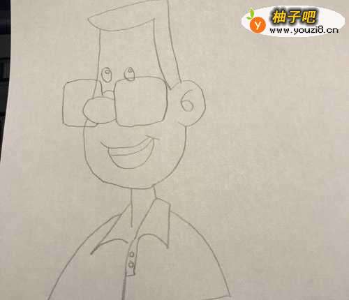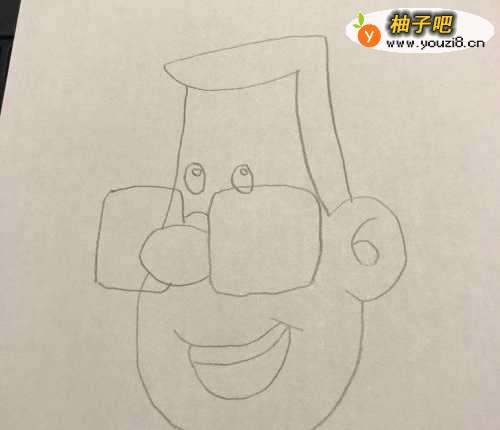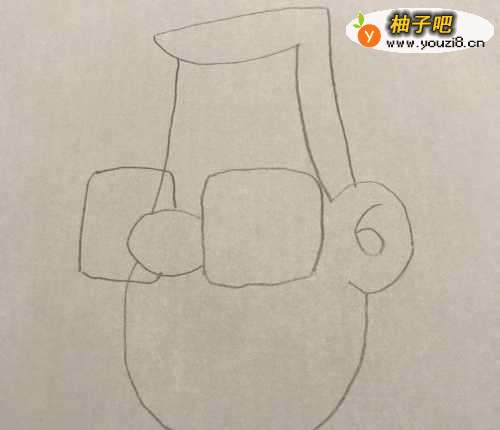 4在鼻子的上方画出戴着的大眼镜,见下图