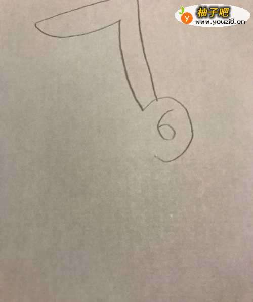 2在7的下方画一个半圆,在半圆里面画一个数字6