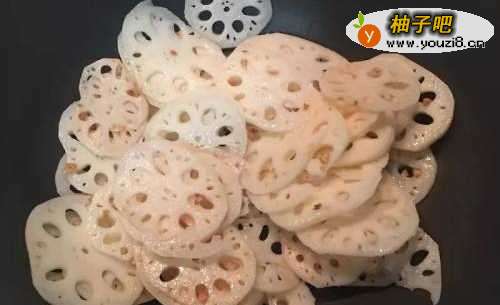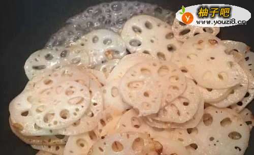 4藕片都炒匀时加少许水,转中火、调味