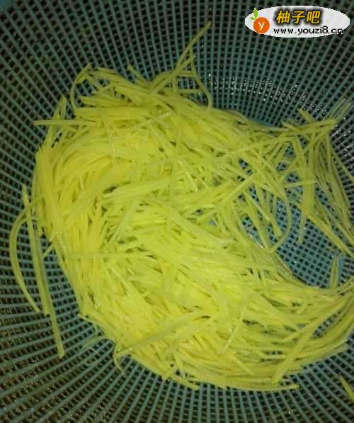 2土豆洗净,打皮!切细丝!水泡!