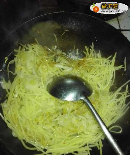 6加酸菜,土豆丝大火翻炒,出锅!
