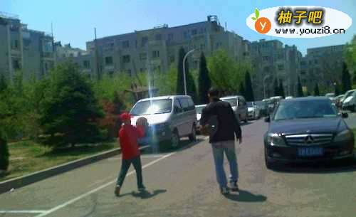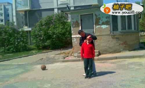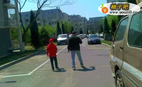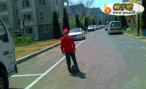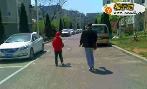 4在道路上没有车的时候,家人告诉还手捧着篮球或用手拍着篮球在道路边上走。