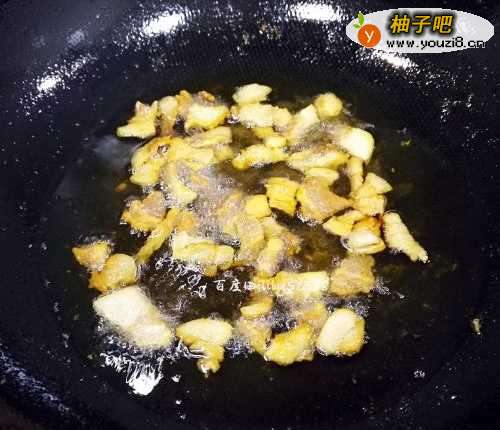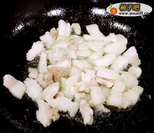 3烧热锅,放入油,把肥肉放入锅里。
