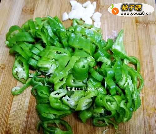 2青椒和大蒜洗干净,切好备用。