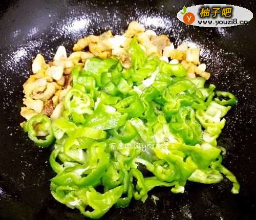 6放入青椒一起炒翻几下,加入一点料酒炒更香。