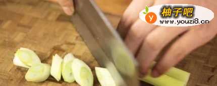 22、姜切丝;朝天椒切片;葱切碎;大葱切件