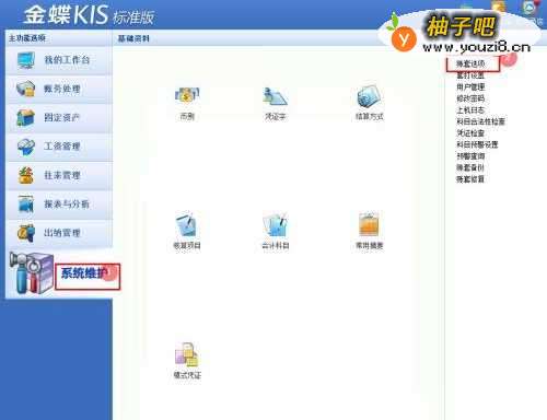 2在功能选项菜单,单击【系统维护】-【账套选项】;