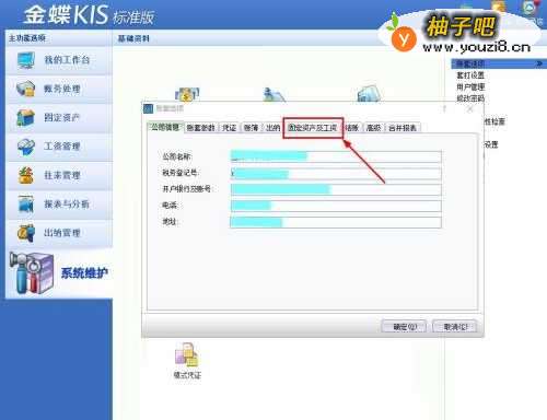 3在“账套选项”界面,单击选择【固定资产及工资】页签;