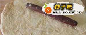 6红豆馅均匀的涂抹在糯米面片上。