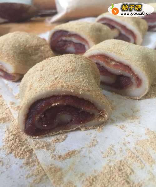 10在糯米卷表面均匀的筛一层黄豆面即可。最后装盘食用!
