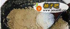 黄豆面放入无油无水的锅里,小火不停的翻炒,黄豆面的颜色由淡黄色变为深土黄色。
