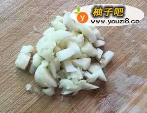 3切两个蒜末,蒜末炒出来的青菜会很香