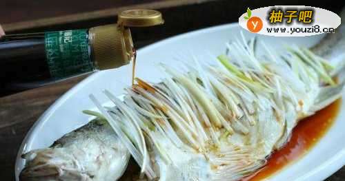 5淋入适量的蒸鱼豉油。