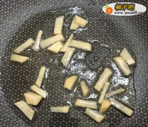 4炒锅热油,先把姜煸炒几下。