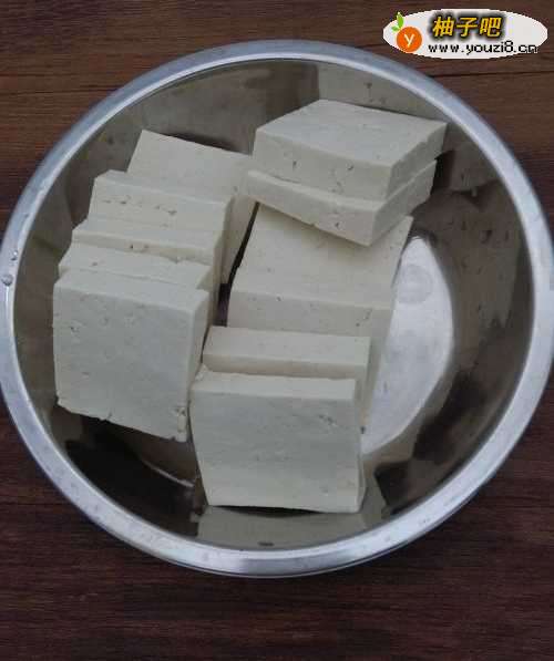 把豆腐清洗干净,切成5厘米左右稍厚一点的块