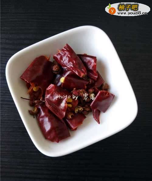3干辣椒剪短,尽量去掉辣椒籽;再备上花椒;