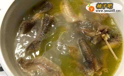 2煮沸一锅水,将鸡架放进沸水里一起煮,水开后续煮约10分钟。然后将鸡骨捞出。