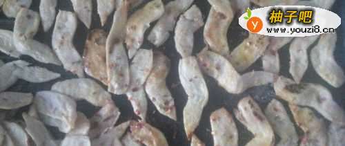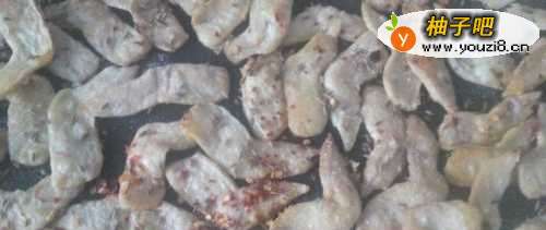 5放孜然,辣椒粉,烤一小会待孜然出香味后加味精,即可出锅。
