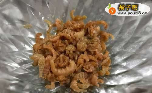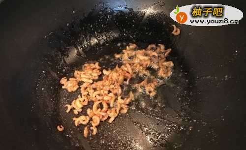 4热锅下油,下虾米炒香。