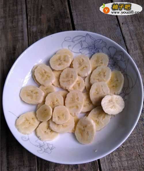 5香蕉去皮,切薄片。