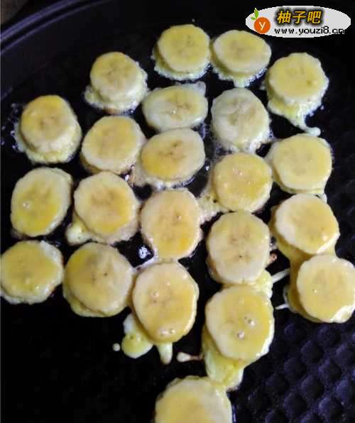 6将香蕉片放入蛋液糊里,挂上一层面糊。