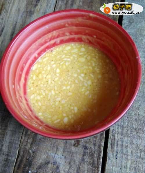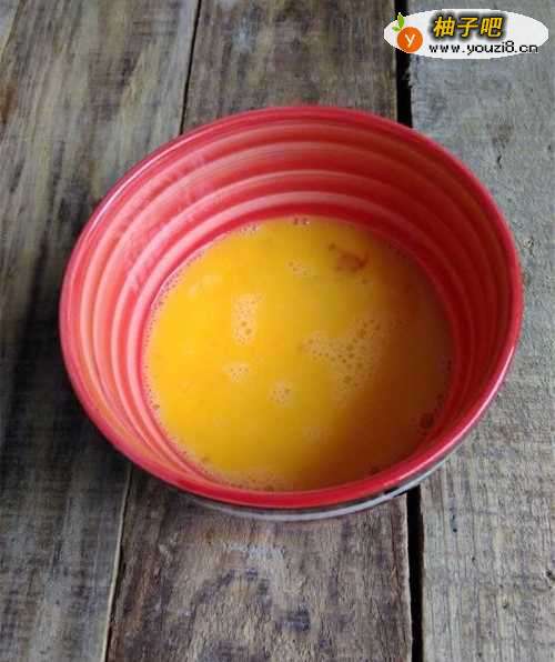 2将蛋液搅打均匀备用。