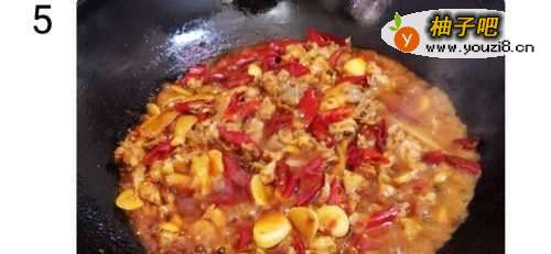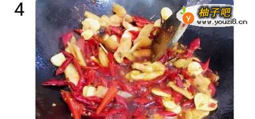 4锅里倒油,烧热后加入泡椒泡姜干辣椒花椒大蒜炒香,再加入豆瓣酱翻炒出红油色。