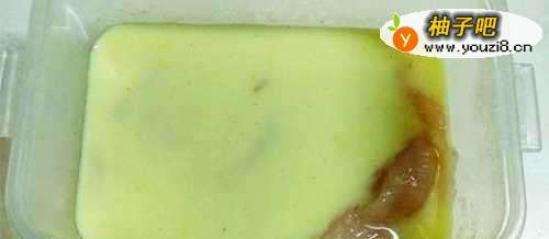 牛奶、盐及咖喱粉调匀成腌汁。