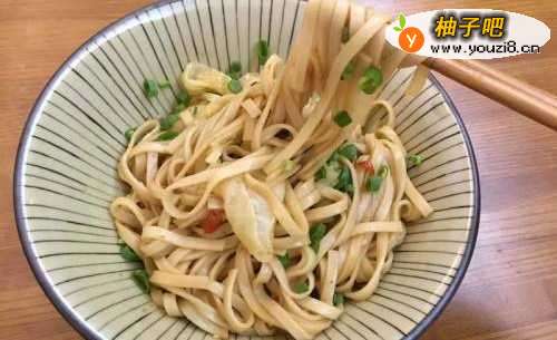 简单方便的干拌面是宵夜的好伙伴,只需要厨房几样酱料就可以拌出一碗美味的小葱面。