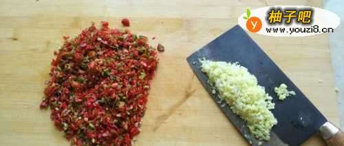 2辣椒切碎,葱和姜切碎。