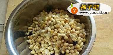提前一天把黄豆用水泡上,第二天把黄豆煮熟(可以放一些八角和花椒)。