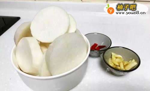 大头菜洗净切片后,用盐腌15分钟左右