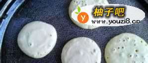 6电饼汽番购铛加热,刷油,舀一勺倒入锅中,小火煎熟,即可。