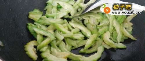 4类似将锅里倒入油,将切好的苦瓜倒入锅内炒至7成熟放入切好的湖南辣椒,炒至9成熟就可以把煎好的鸡蛋倒入锅内,将鸡蛋用锅铲将鸡蛋饼捣成小块,加入食盐,味精在倒少量水闷1分钟。