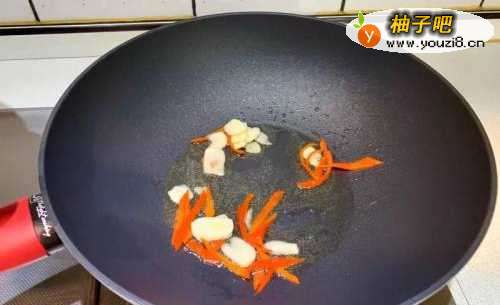 2油热入蒜片及辣椒爆香