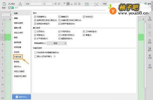 3进入选项界面,点击【外部内容】。