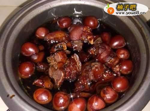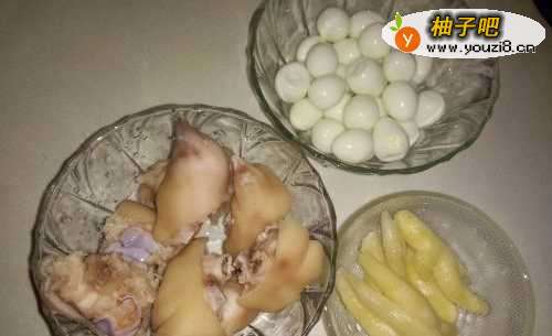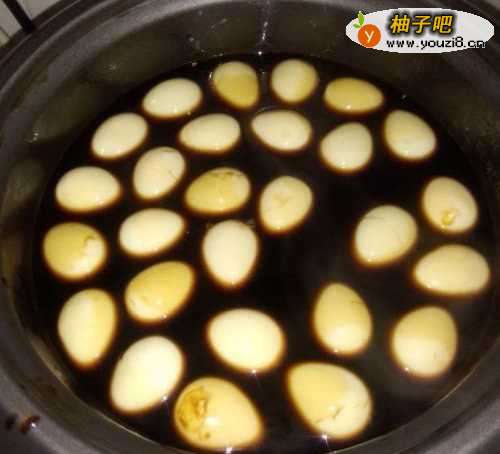 5接着放入已经剥壳的鹌鹑蛋和炒干的姜片。